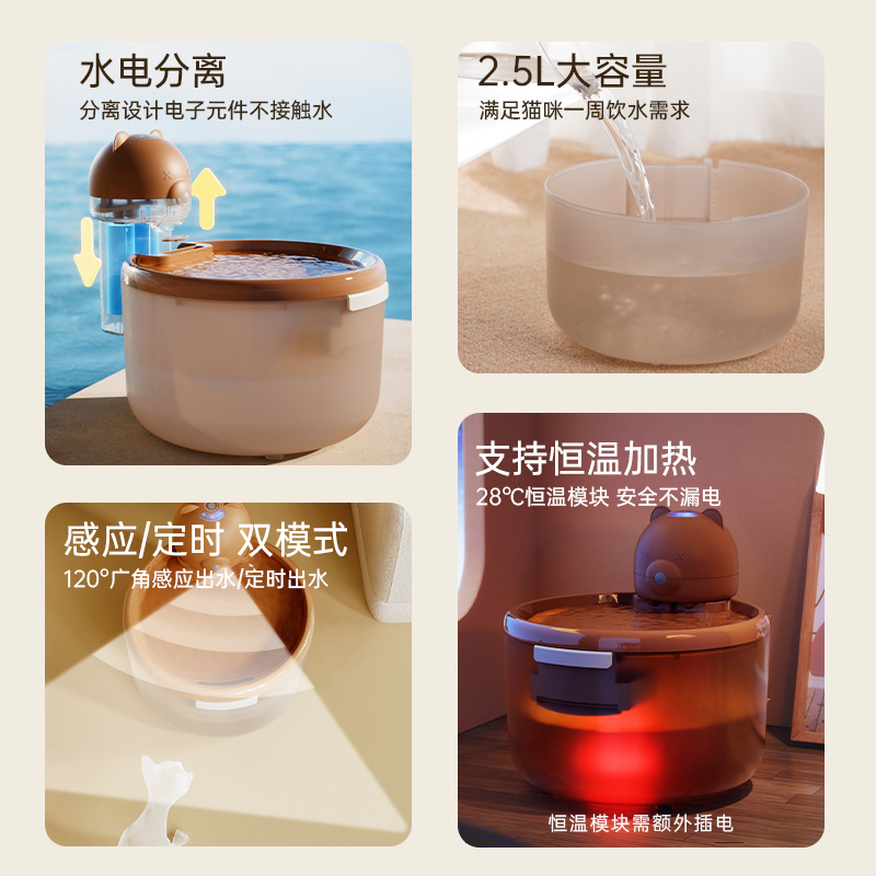 猫咪饮水机无线自动恒温加热循环流动不插电猫喂水神器宠物喝水器