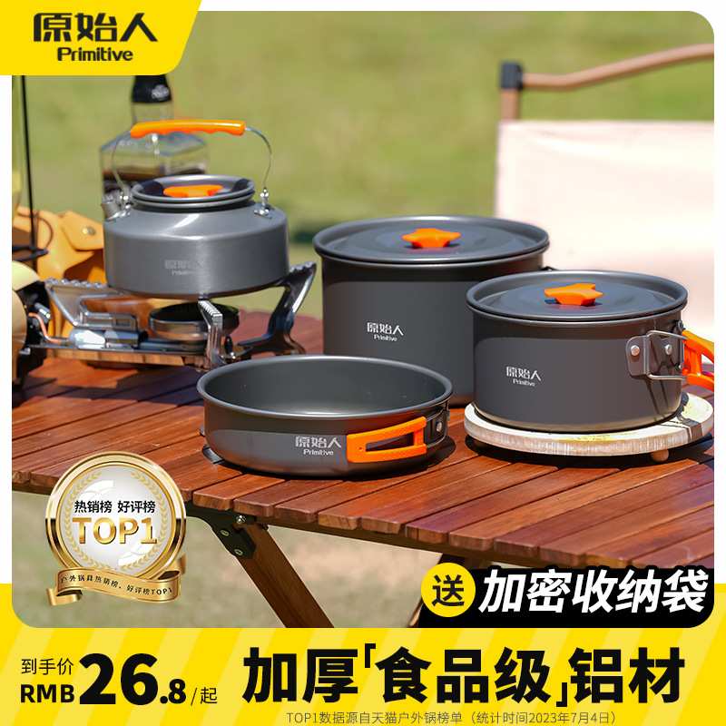 原始人露营炊具户外锅水壶煎锅装备便携野外野营餐具套锅锅具用品