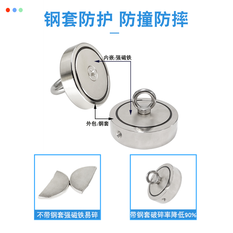强力磁铁打捞圆形吸铁石磁性吊环高强度大号钕铁硼强磁固定器吸盘
