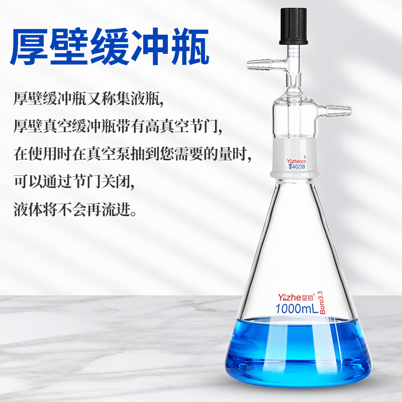 翌哲厚壁缓冲瓶砂芯过滤装置配套抽滤瓶实验室真空过滤瓶液体截流瓶积液瓶250/500/1000/2000/3000/5000ml