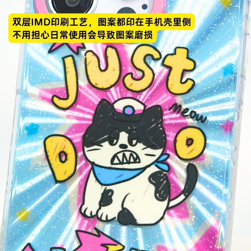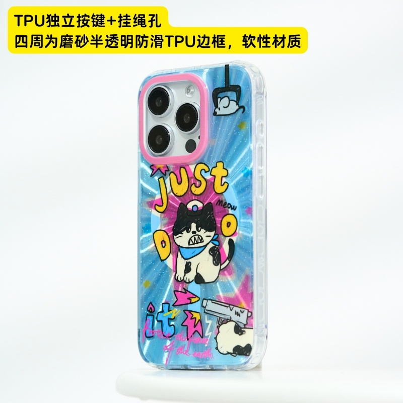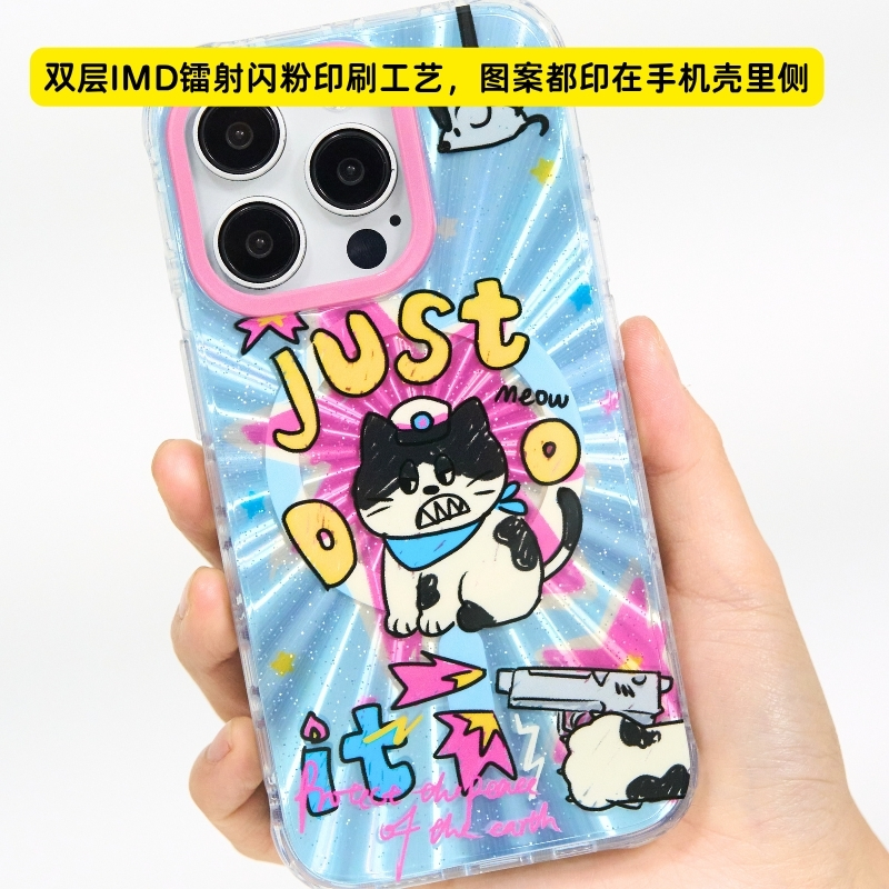 【支持17】星期天家奶牛猫出击艺术家授权手绘蓝粉撞色闪粉双层可爱卡通IMD情侣iPhone16Pro苹果15华为mate60