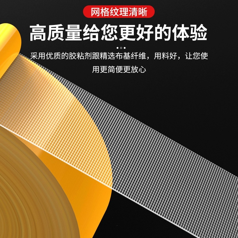 强力布基网格双面胶无痕胶带高粘度墙布固定地毯双面胶宽黄色透明加厚防水纤维胶布超强春联对联胶贴不留痕
