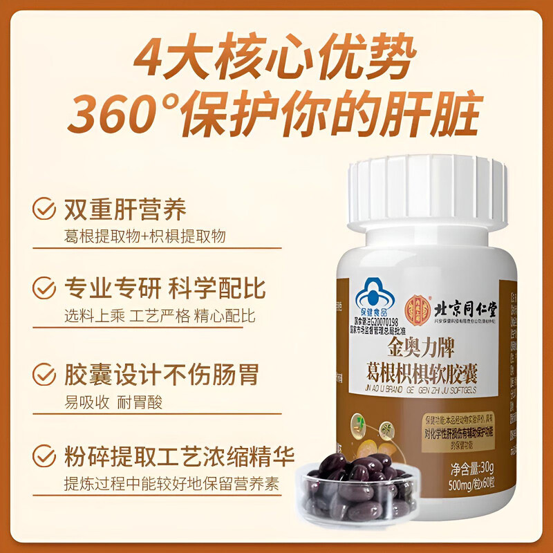 北京同仁堂养肝护肝片男士金奥力牌葛根枳椇软胶囊旗舰店正品解酒