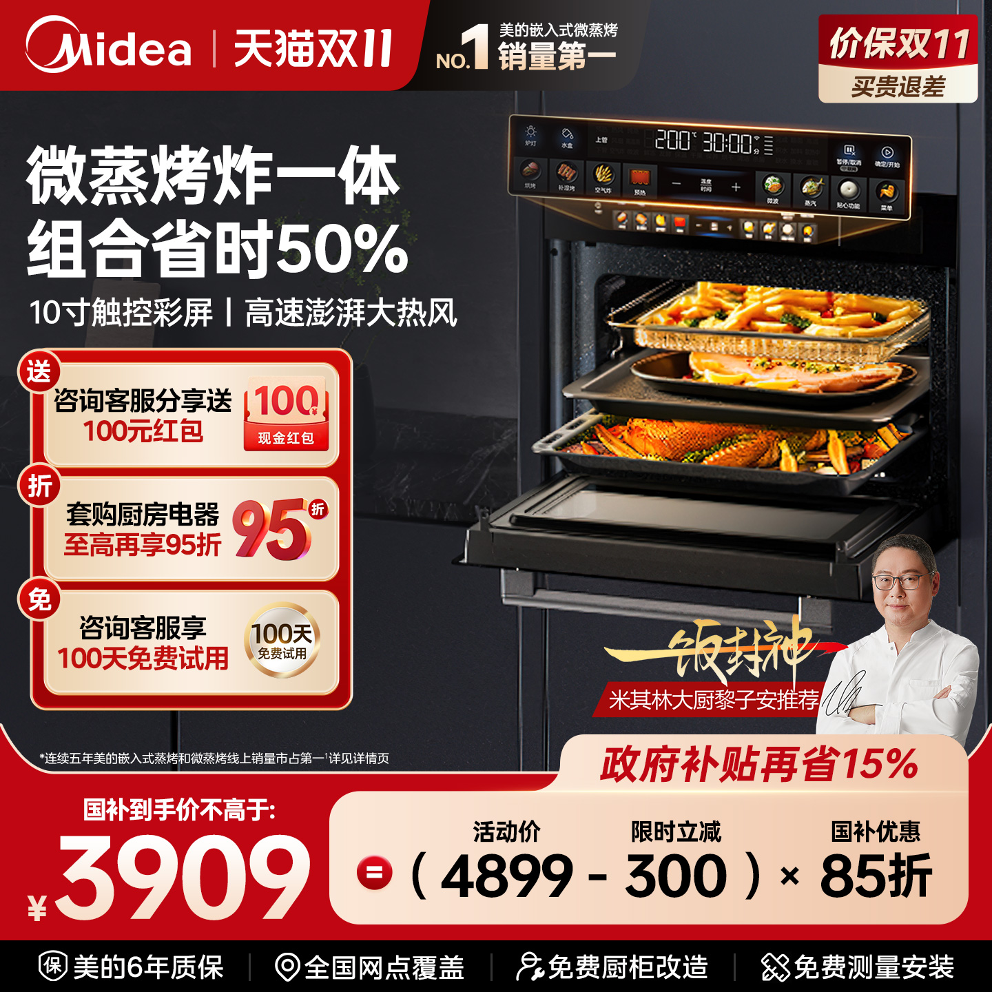 [政府补贴]美的GS5微蒸烤一体机家用嵌入式蒸烤箱智能微波炉炸炖