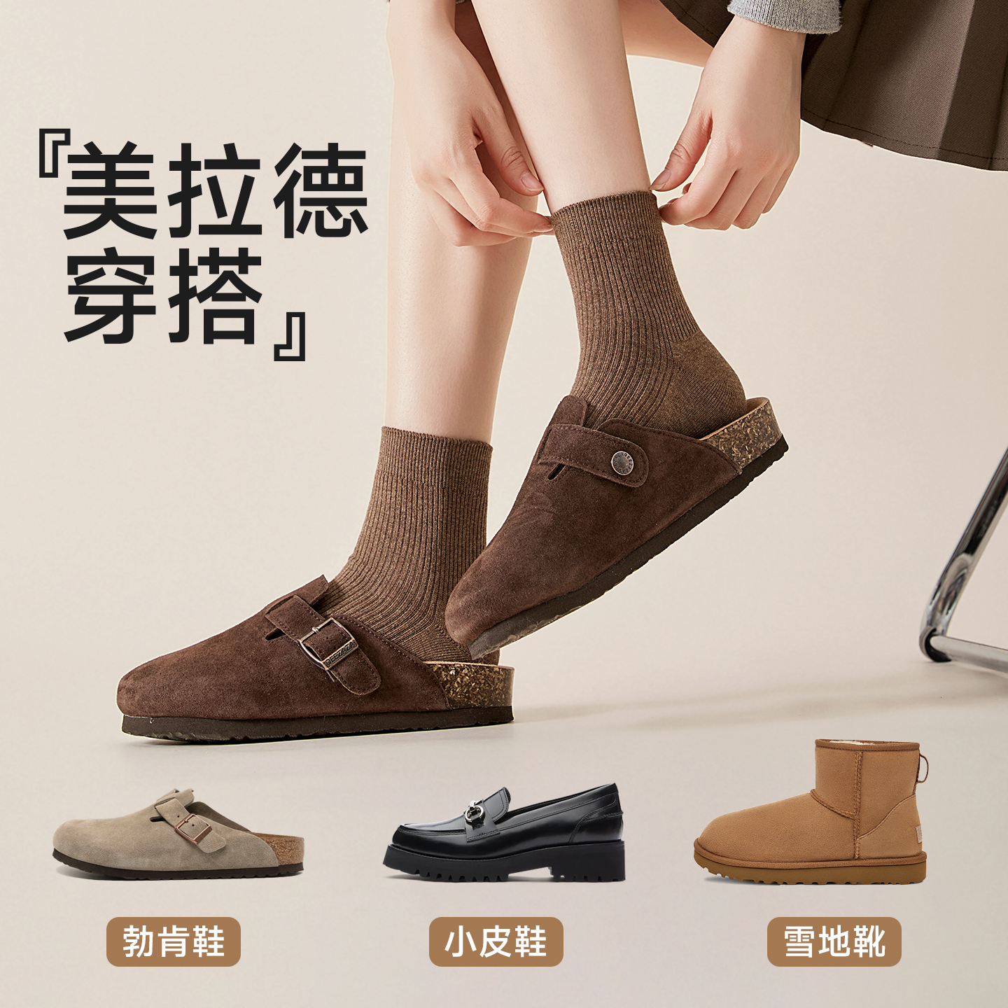 搭配勃肯鞋袜子女士秋春短袜纯棉防臭2025新款爆款棕咖色短筒棉袜