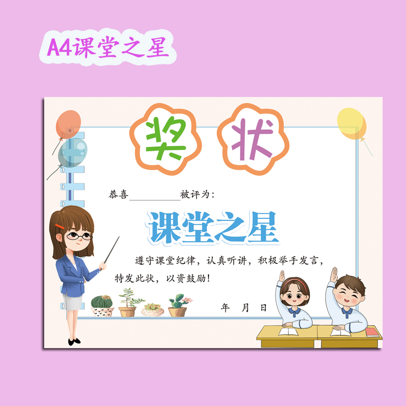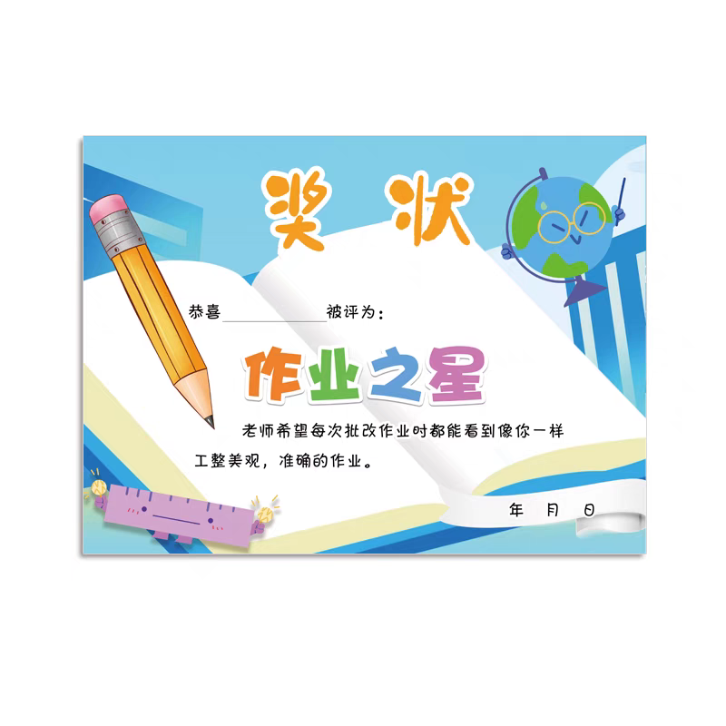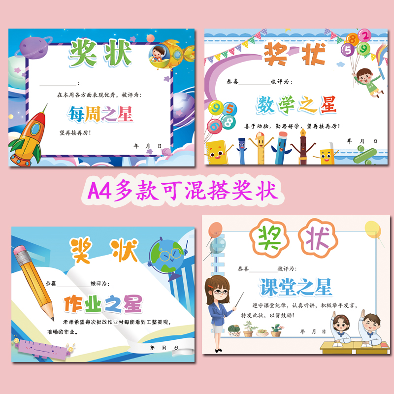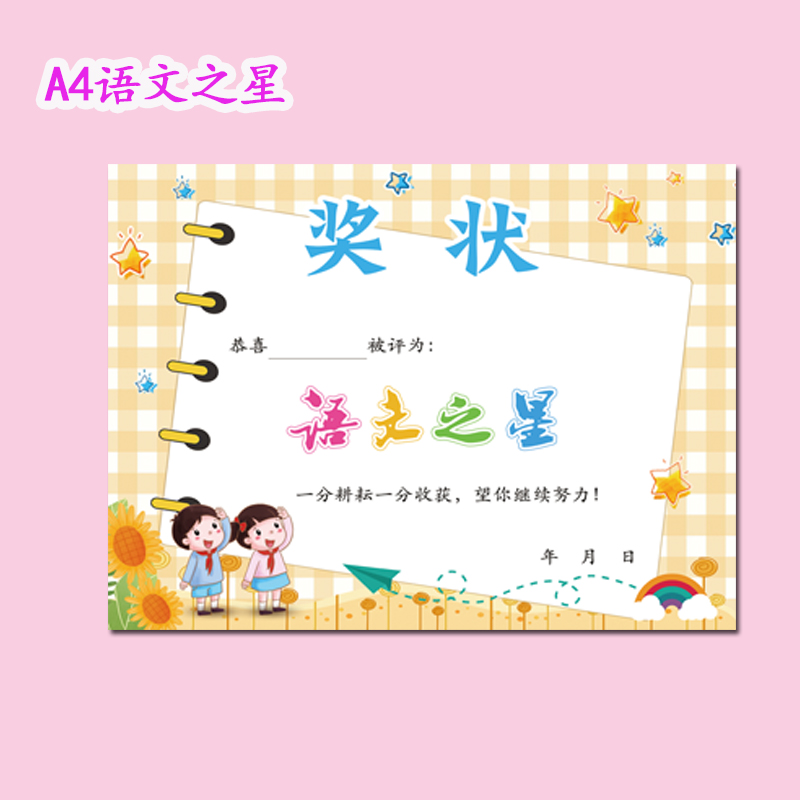 A4小学生奖状小学生数学奖状教师用品课堂之星本周之星语文奖状