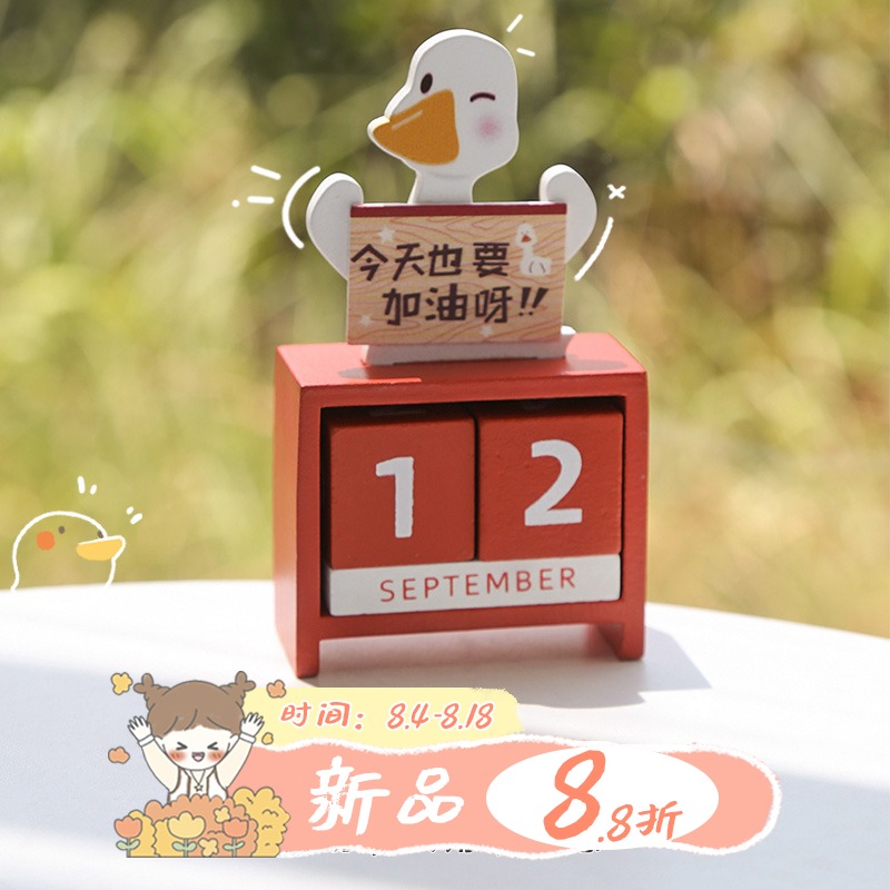 速发今天也要加油鸭可爱鸭子木制积木台历桌面摆件办公室2022年小