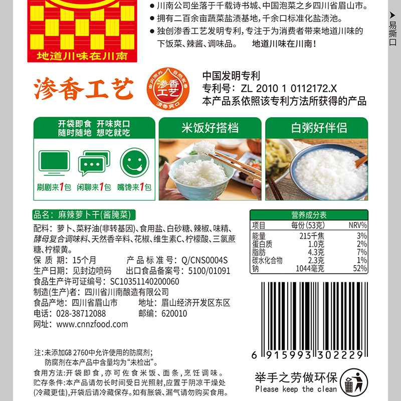 川南麻辣萝卜干咸菜53g袋装四川下饭菜红油萝卜丝榨菜即食小菜