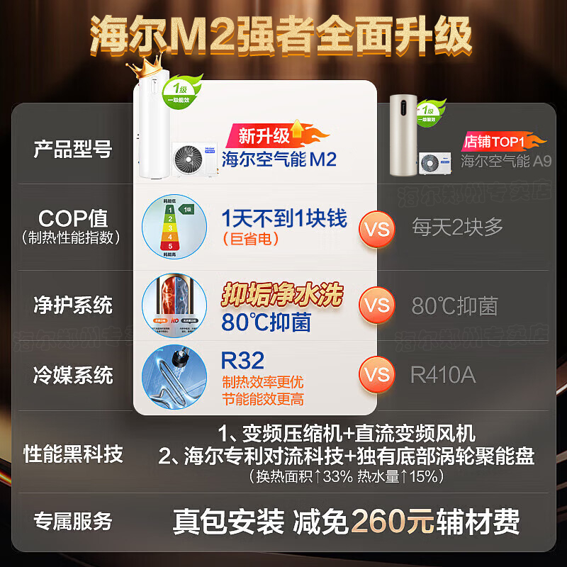 国补海尔空气能热水器家用200升一级能效变频零冷水别墅自建房M2
