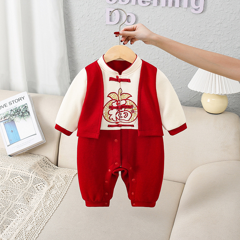 婴儿周岁礼服秋装新款哈衣新生儿宝宝满月百天衣服小月龄长袖爬服
