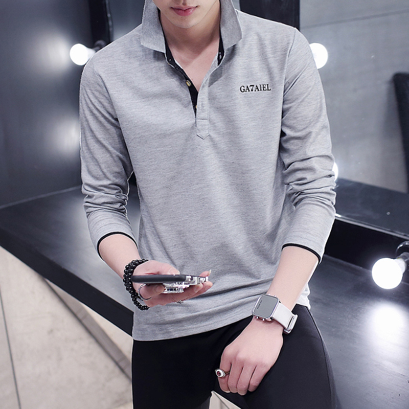 男士翻领t恤长袖春秋装大码polo衫男装春秋季打底衫有带领上衣服