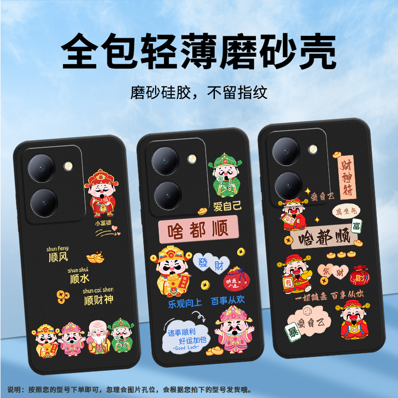 适用vivoY78手机壳Y78T保护壳Y77T全包边Y78m磨砂壳5G啥都顺铜钱发财好运一切随意发财文艺乐观向上时尚网红i