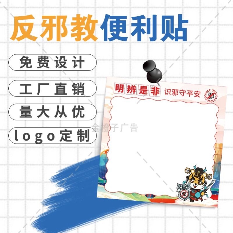 抵御邪教普及反邪知识宣传进学校社区村委活动小礼品定制便利贴纸