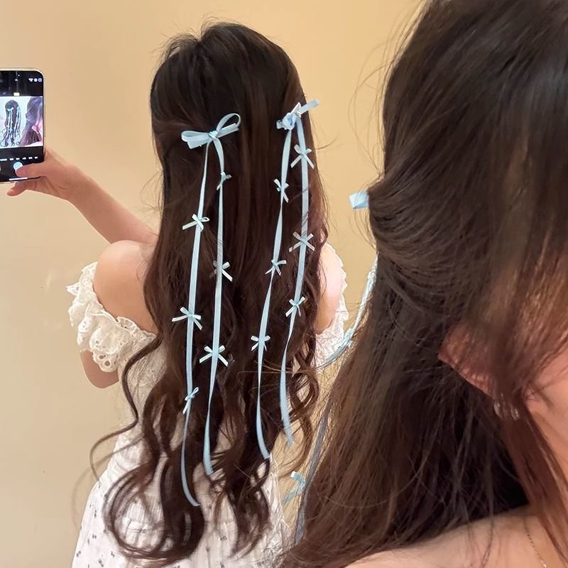 好看的侧边发夹新款高端超仙甜美蝴蝶结丝带发卡可爱风后脑勺发饰
