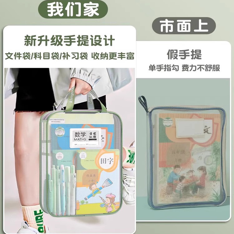 科目分类袋小学生学科袋手提拎书袋学生一年级拉链式试卷收纳袋分科整理文件袋学科课本学习资料作业开学必备
