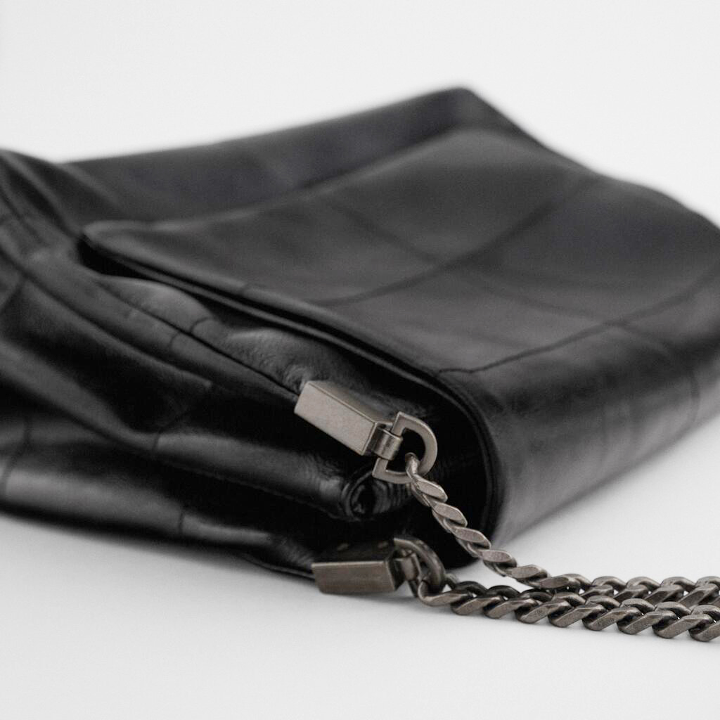 2025欧美时尚大包黑色纯色休闲女包链条通勤大容量百搭横款单肩包