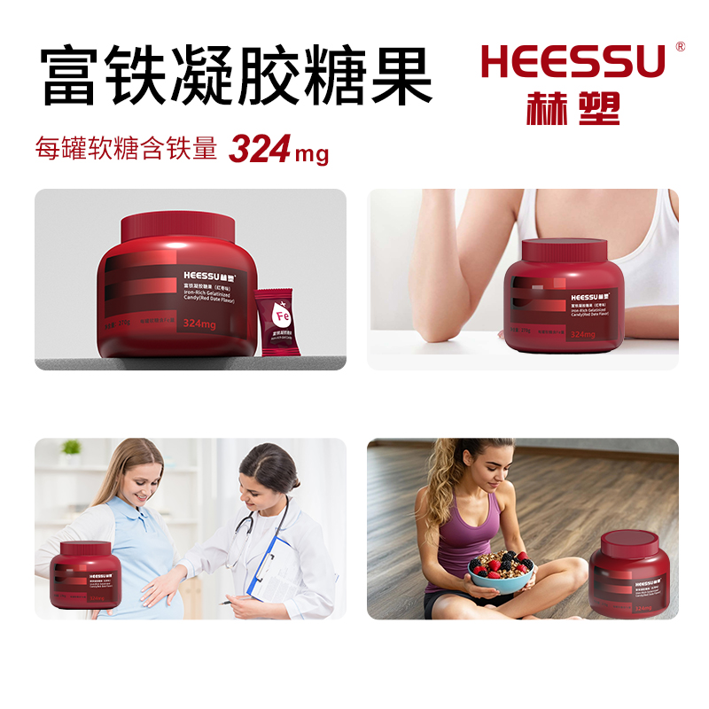 HEESSU赫塑富铁软糖补剂补血铁324mg铁Fe元素贫血270g瓶正品健康