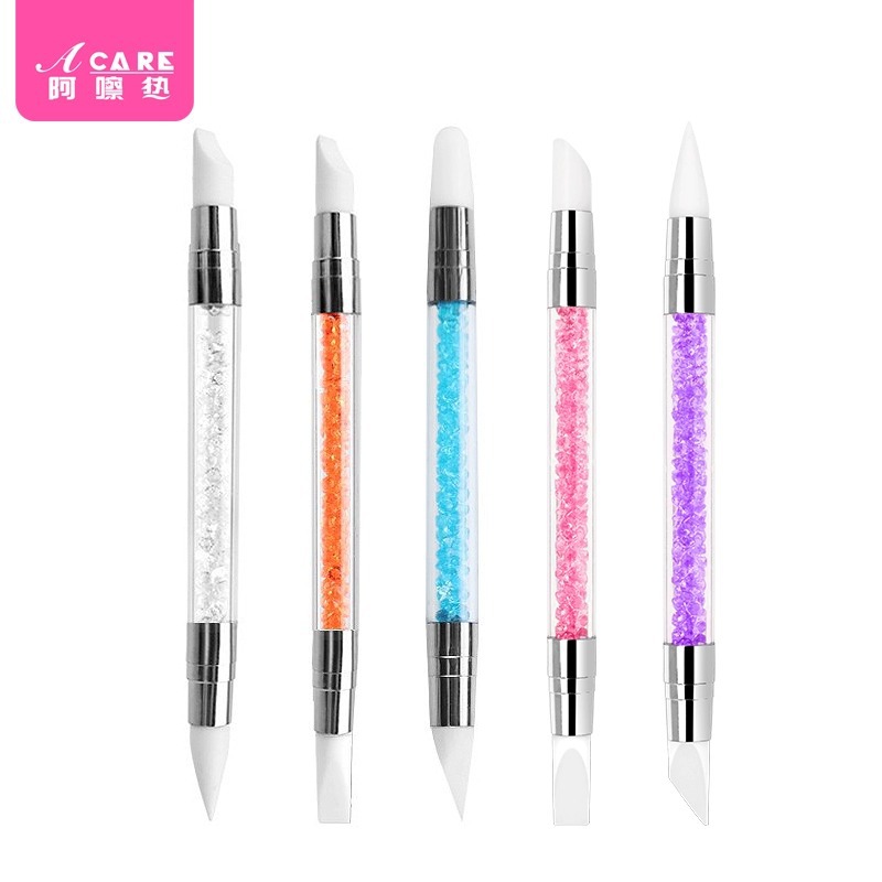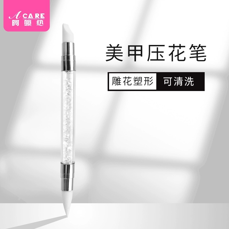 美甲笔刷/压花A1vq0-阿嚓热硅胶笔涂魔镜粉贴纸按压笔雕花笔工具