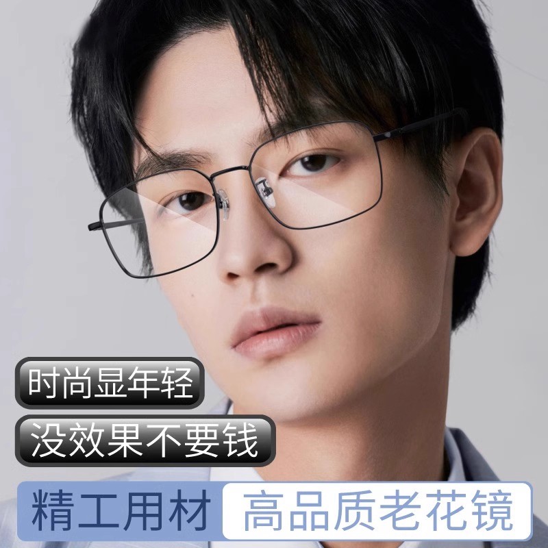水晶中老年老花镜男式高清防蓝光抗疲劳老人高档正品远近两用变焦