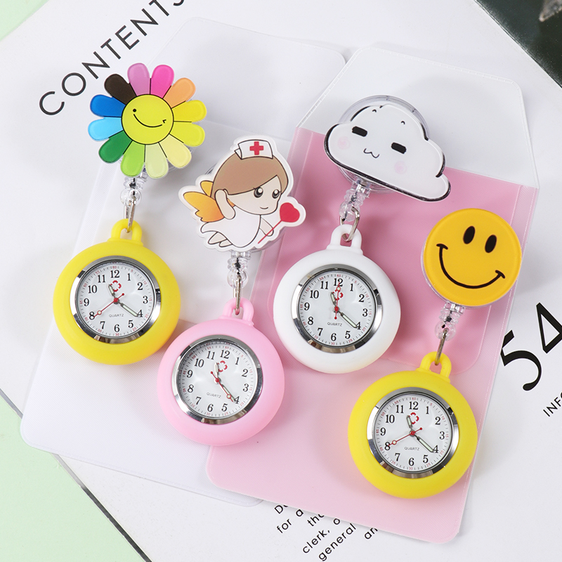 卡通护士表女款学生考试医生用胸怀表硅胶夜光可爱可拉挂表可伸缩