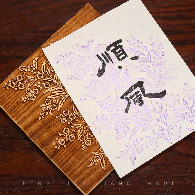仿宋砑花板 传统砑花榉木信笺宝相花祥云冰梅八宝久留贴