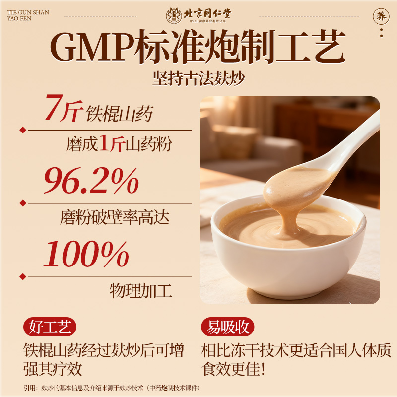 北京同仁堂铁棍山药粉官方旗舰店正宗河南焦作垆土纯山药干糊养胃