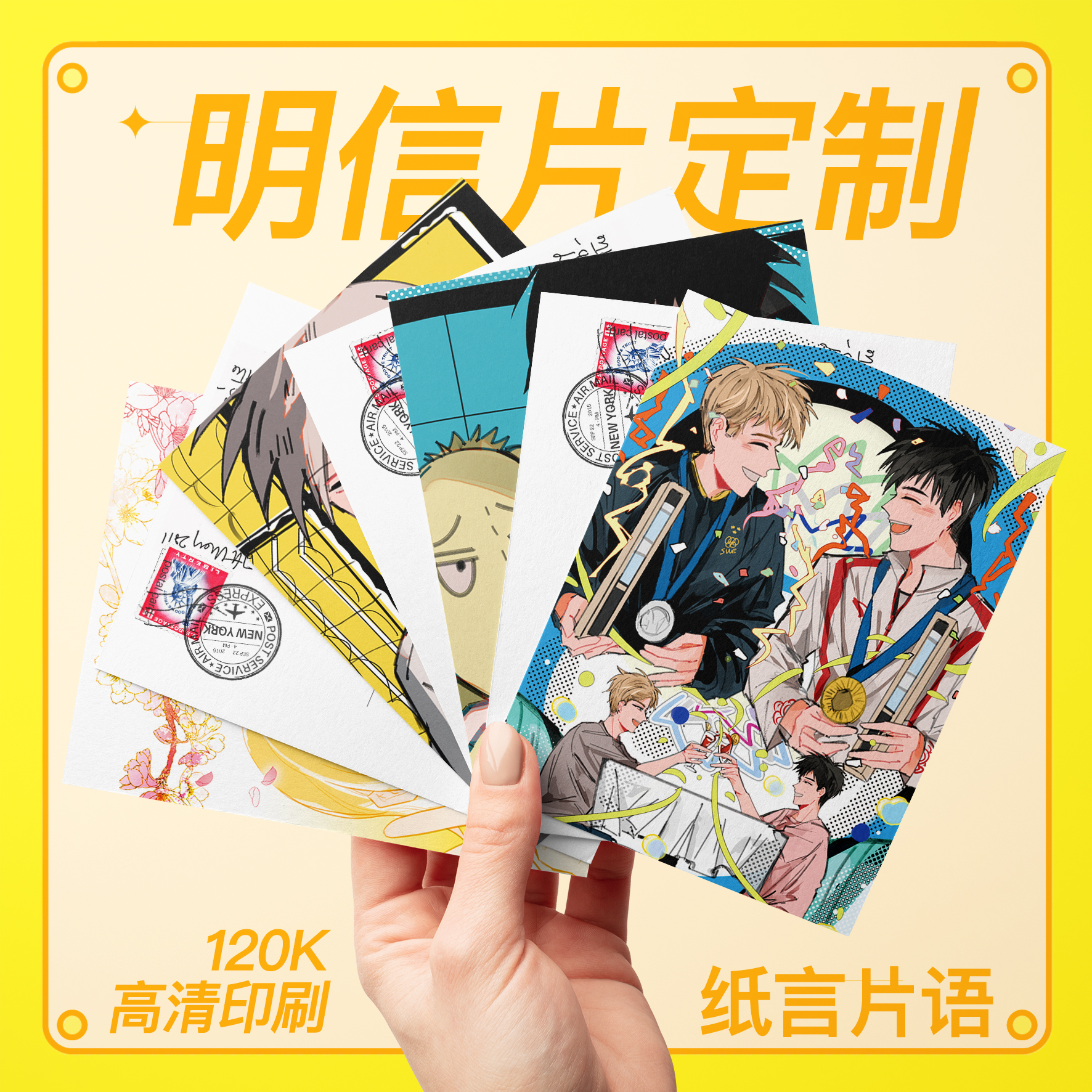 纸言片语 明信片定制特种纸双面印刷定做烫金珠光满天星覆膜打印