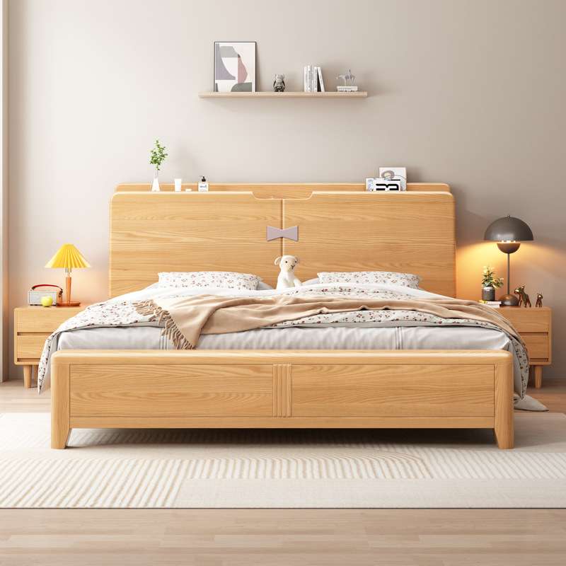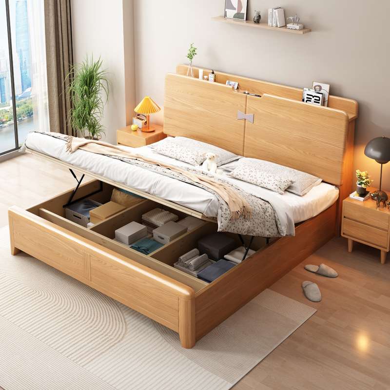 白蜡木北欧全实木床现代简约主卧室双人床单人床小户型落地储物床