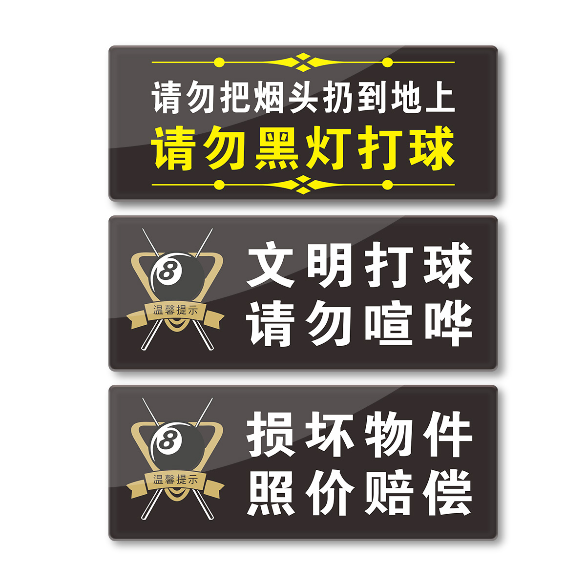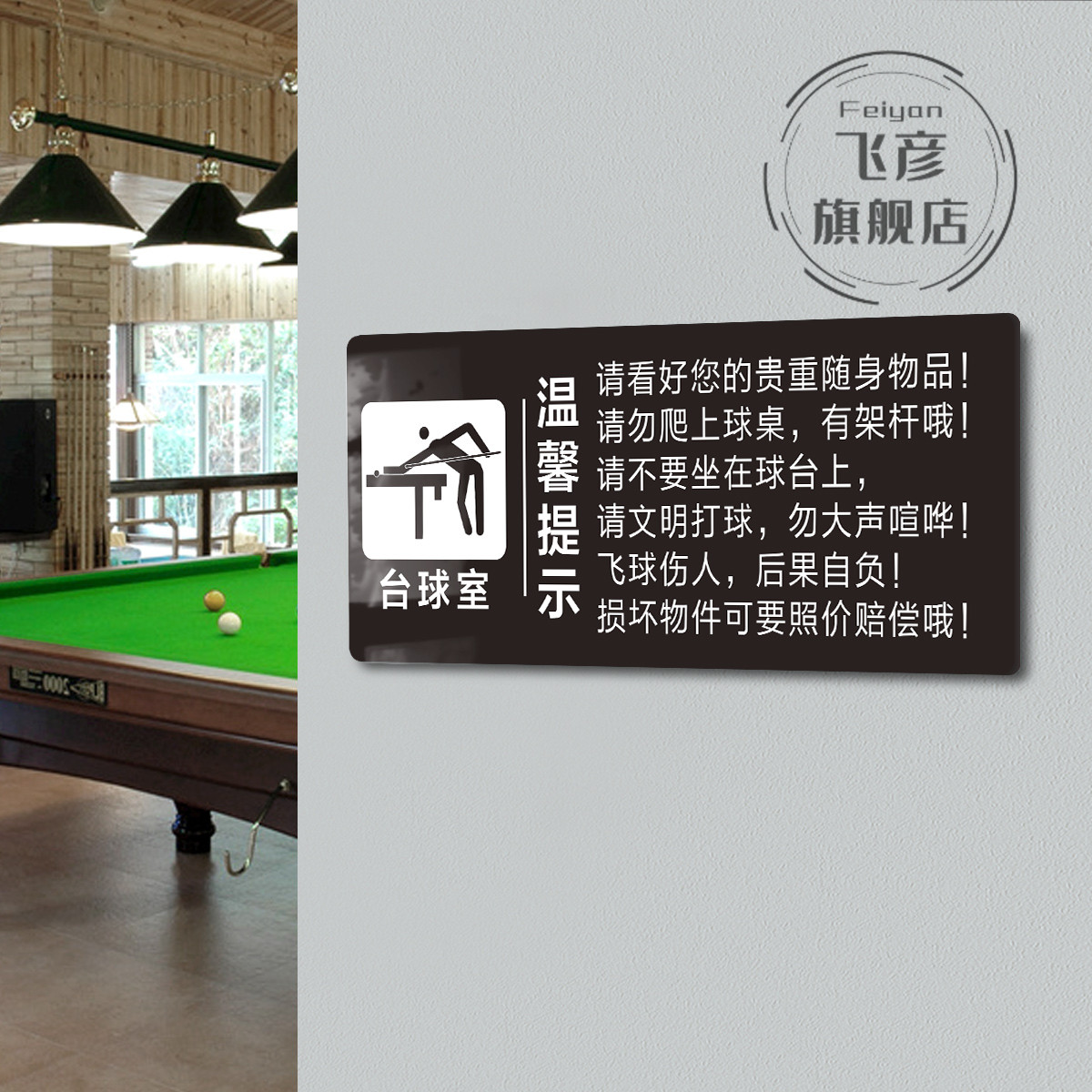 亚克力台球提示牌请勿黑灯打球大声喧哗不要坐球台已清理标识牌禁止吸烟标牌WiFi监控警示指示门牌定制墙贴纸