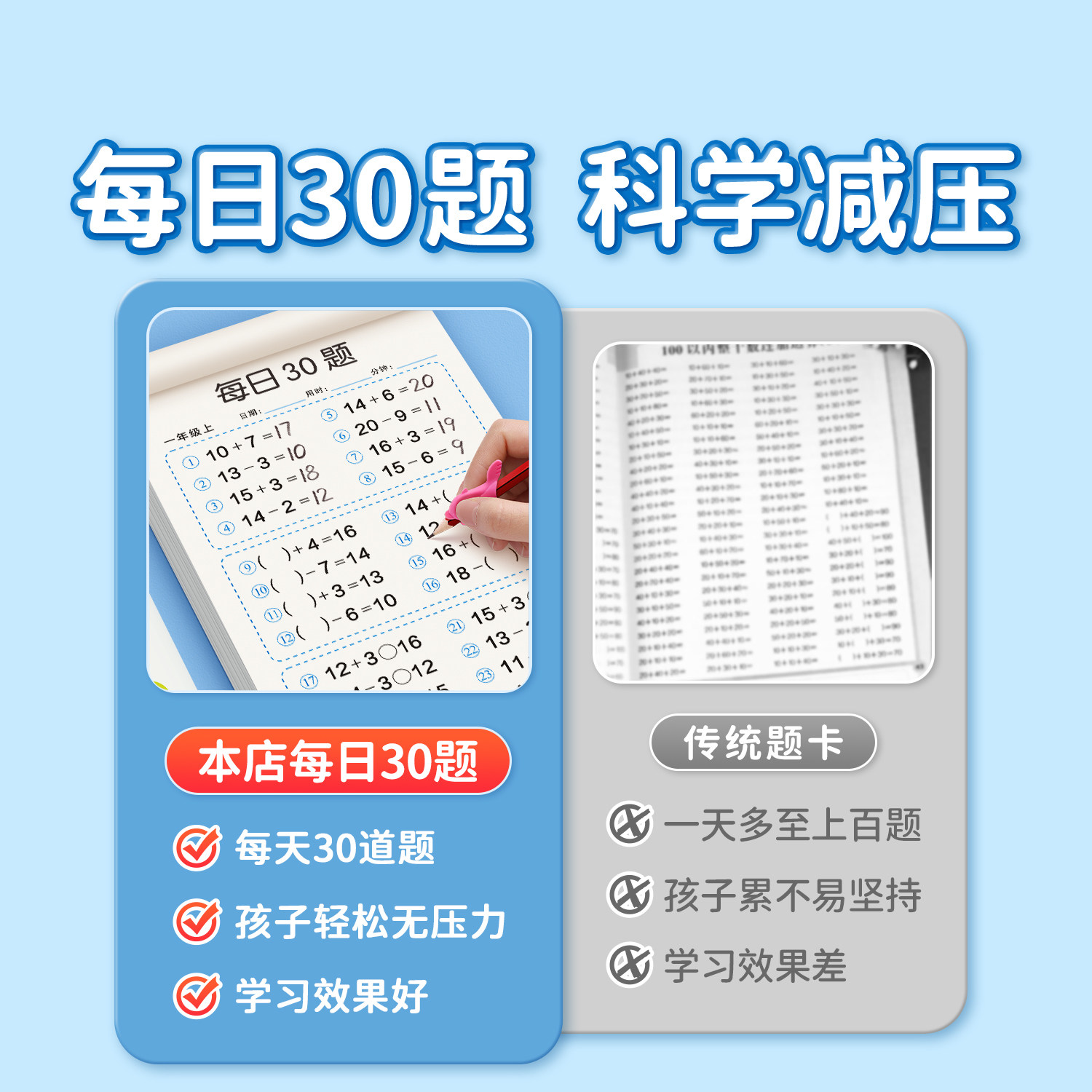 一年级上册下册口算天天练1020100以内加减法计算二三年级口算题卡训练人教版同步速算专项练习册每日30题一日一练运算混合加法