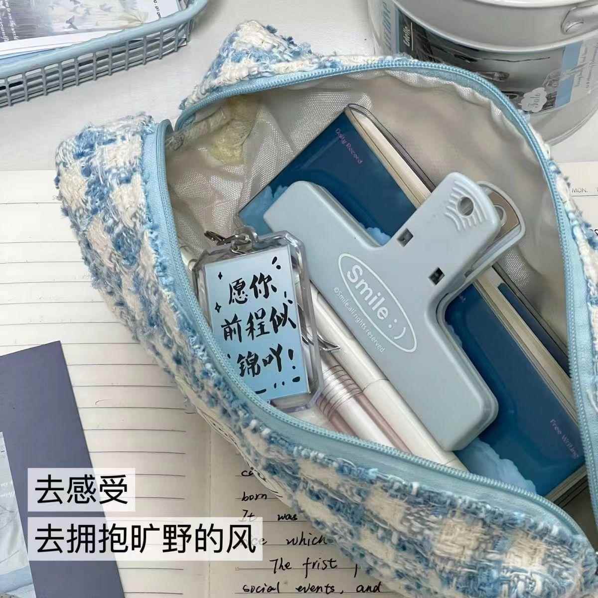 糖果粉色毛呢文具收纳盒高颜值大容量ins风文具笔袋简约创意学生