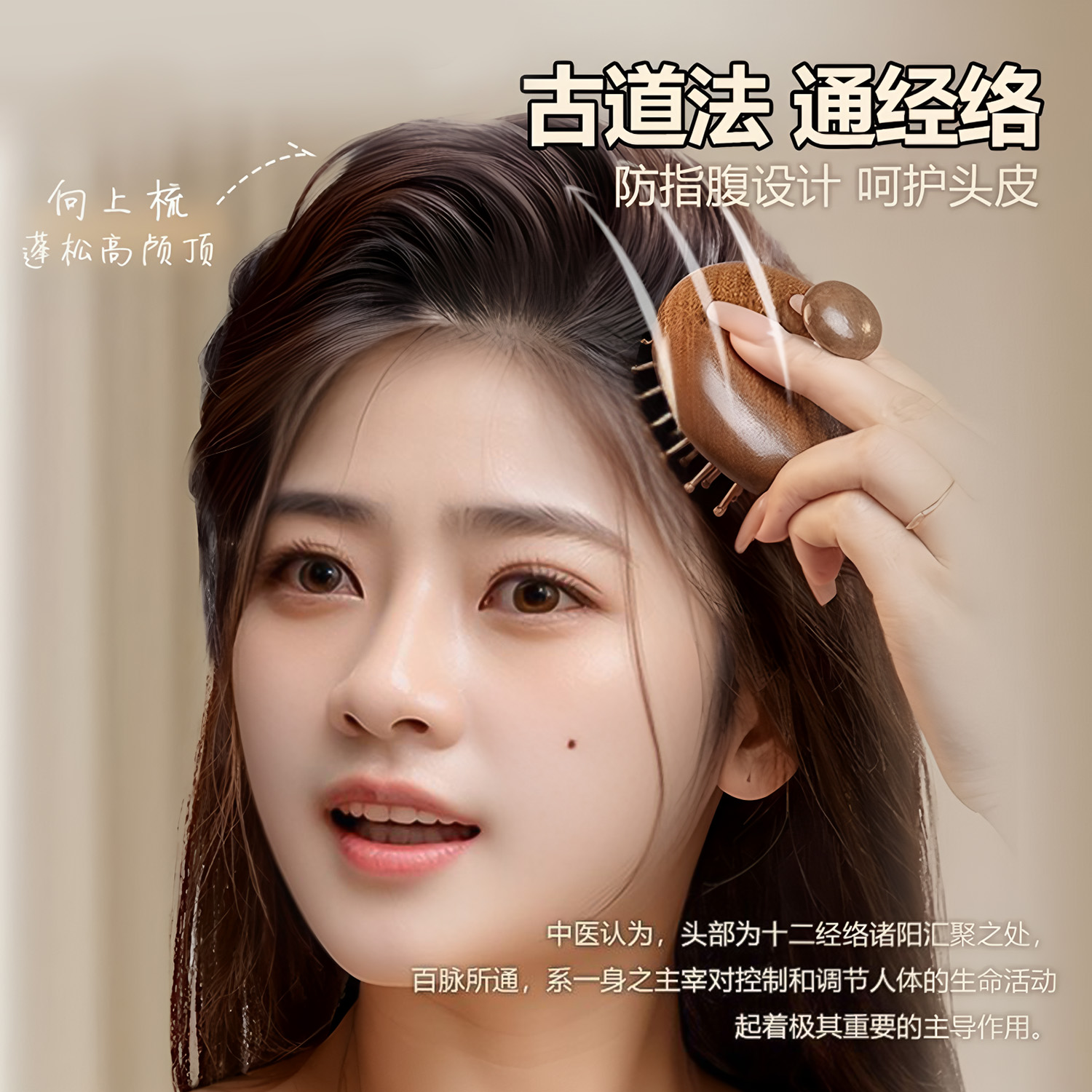 檀木梳圆盘梳按摩梳头部头皮经络梳疏通神器养发蘑菇梳子腹部鹿角