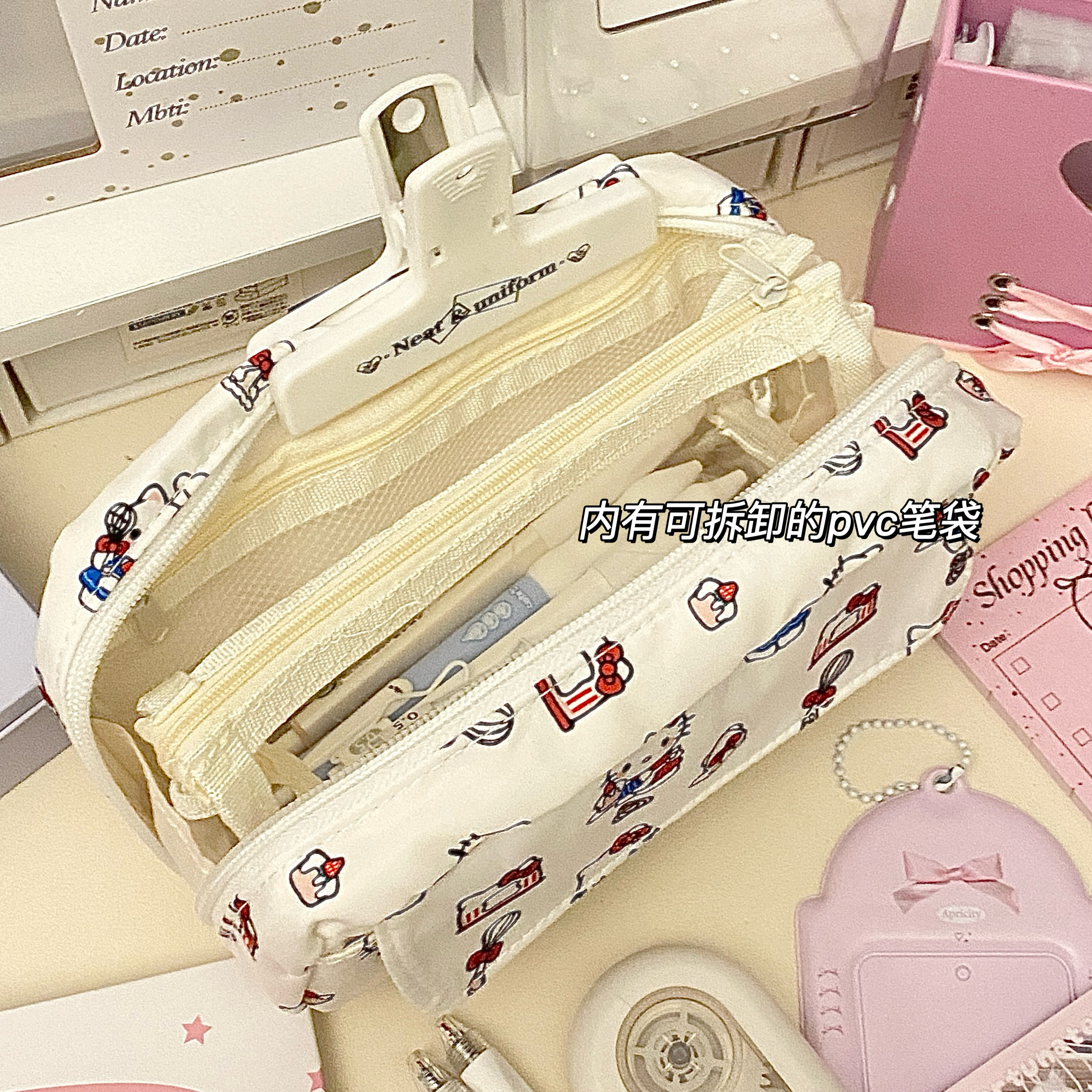 可爱高颜值kitty笔袋少女心ins风卡通大容量带夹层学生文具收纳袋