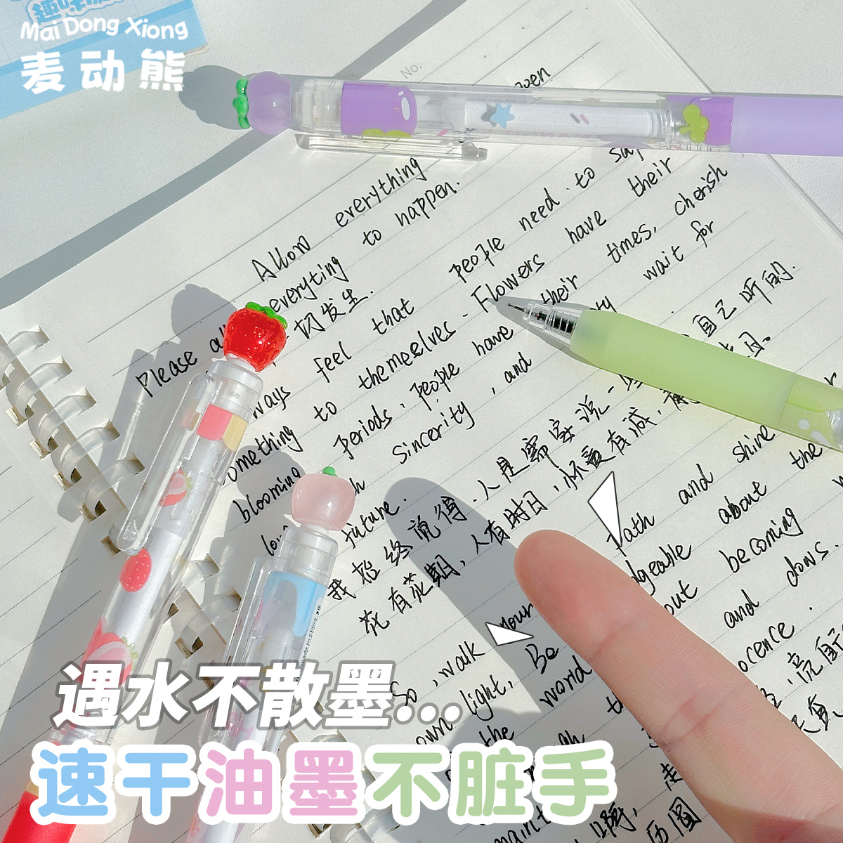 果然有趣按动中性笔可爱水果解压创意学生做笔记刷题笔高颜值黑笔