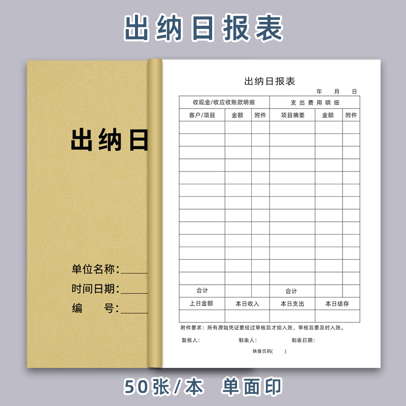 出纳日报表每日收入记账本每日营业日报表利润收银销售单点数单出纳记账流水支出登记本店铺美容院营业额记录