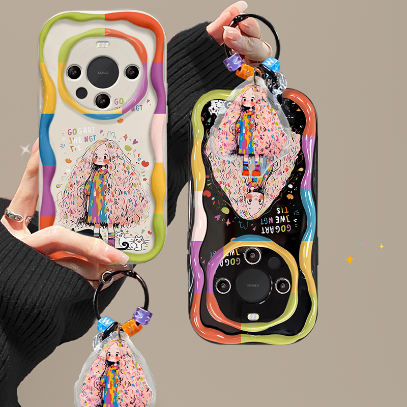 适用华为mate60pro手机壳p60新女款p50/30奶油纹荣耀100/80透明90/70pro长发女孩挂坠nova12/10防摔5g保护套