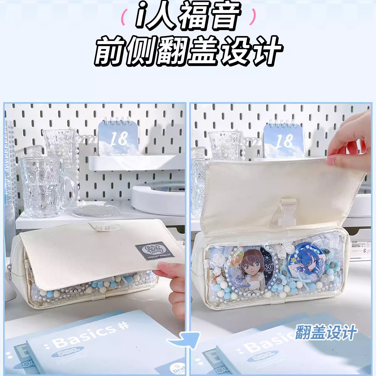 三年二班x蓝果 翻盖痛笔袋女生2024新款高颜值设计感小众透明痛层铅笔袋男孩二次元初中小食量多层痛包文具盒