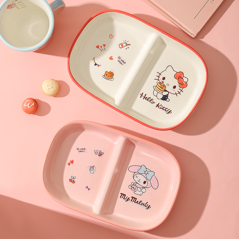 川岛屋三丽鸥儿童分格餐盘家用陶瓷一人食餐具套装可爱盘子早餐盘