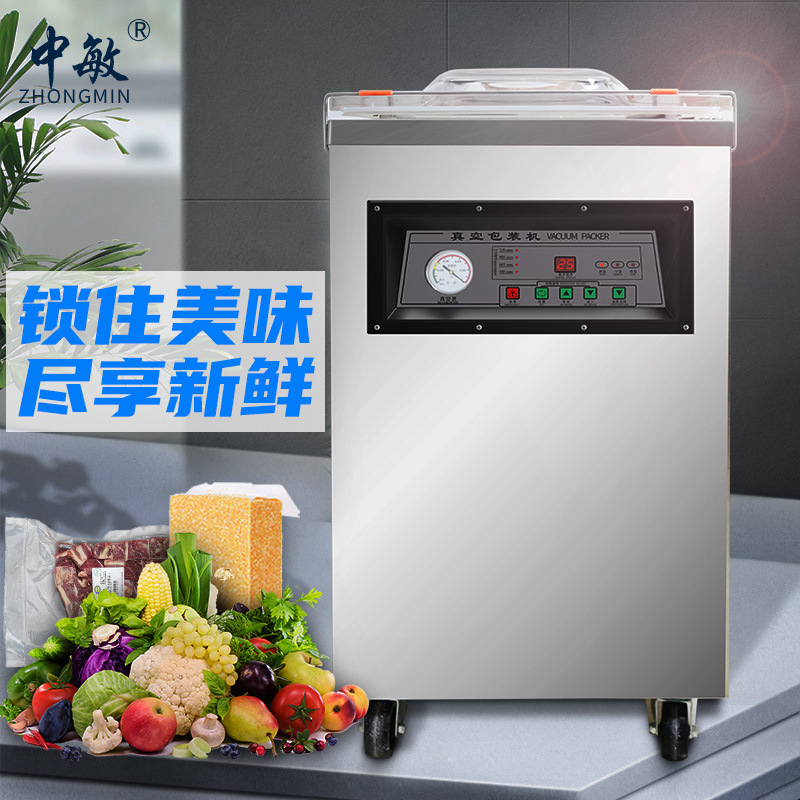 中敏400食品包装机全自动干湿两用抽茶叶大米卤货封口打包真空机