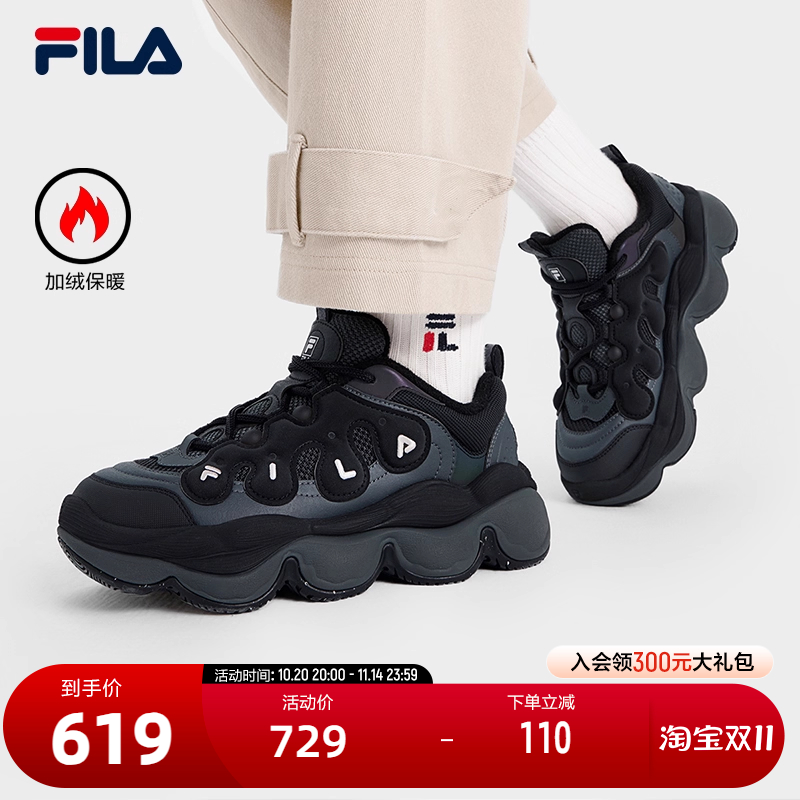 FILA 斐乐官方PEASE WE摩登运动鞋女2024冬新款加绒豌豆鞋休闲鞋