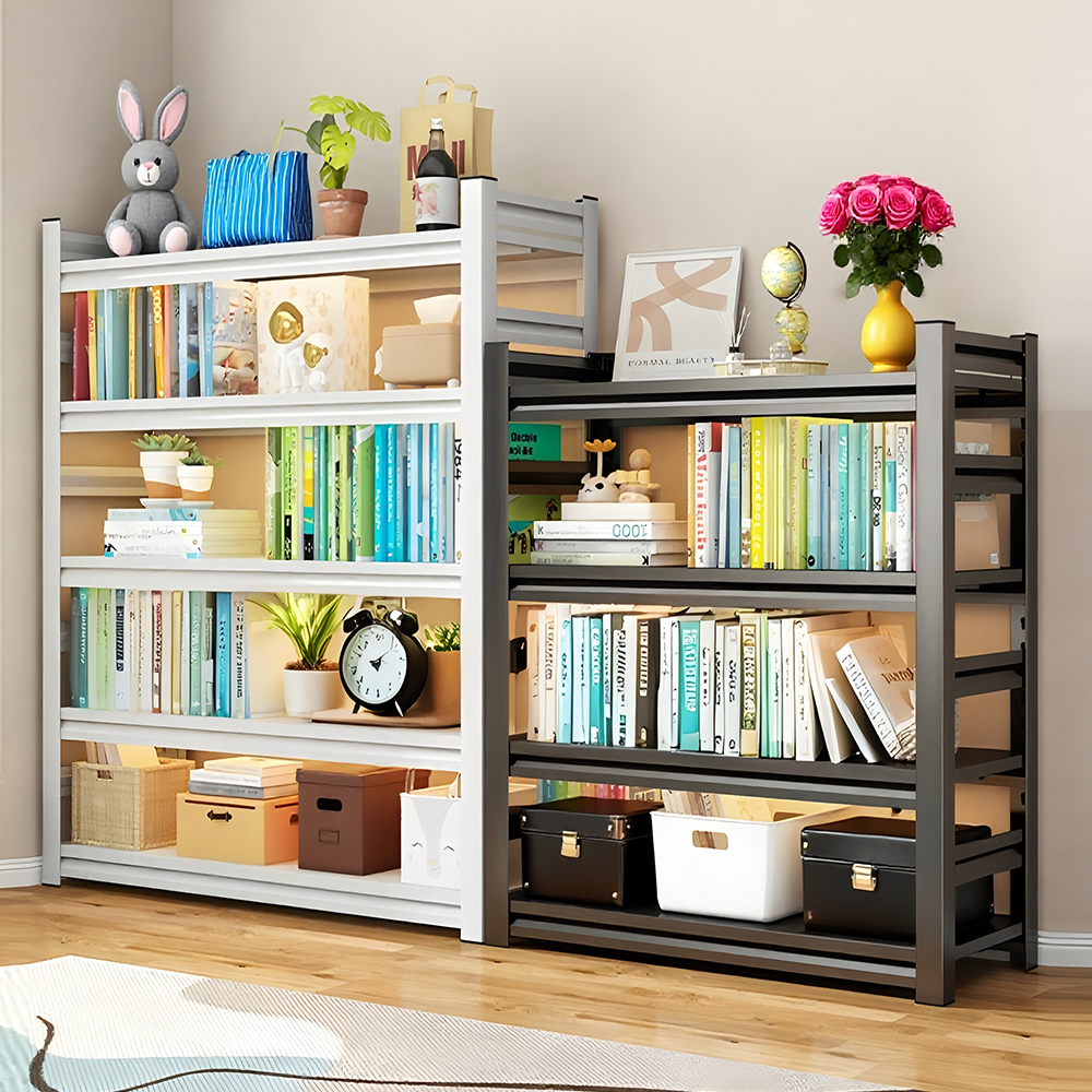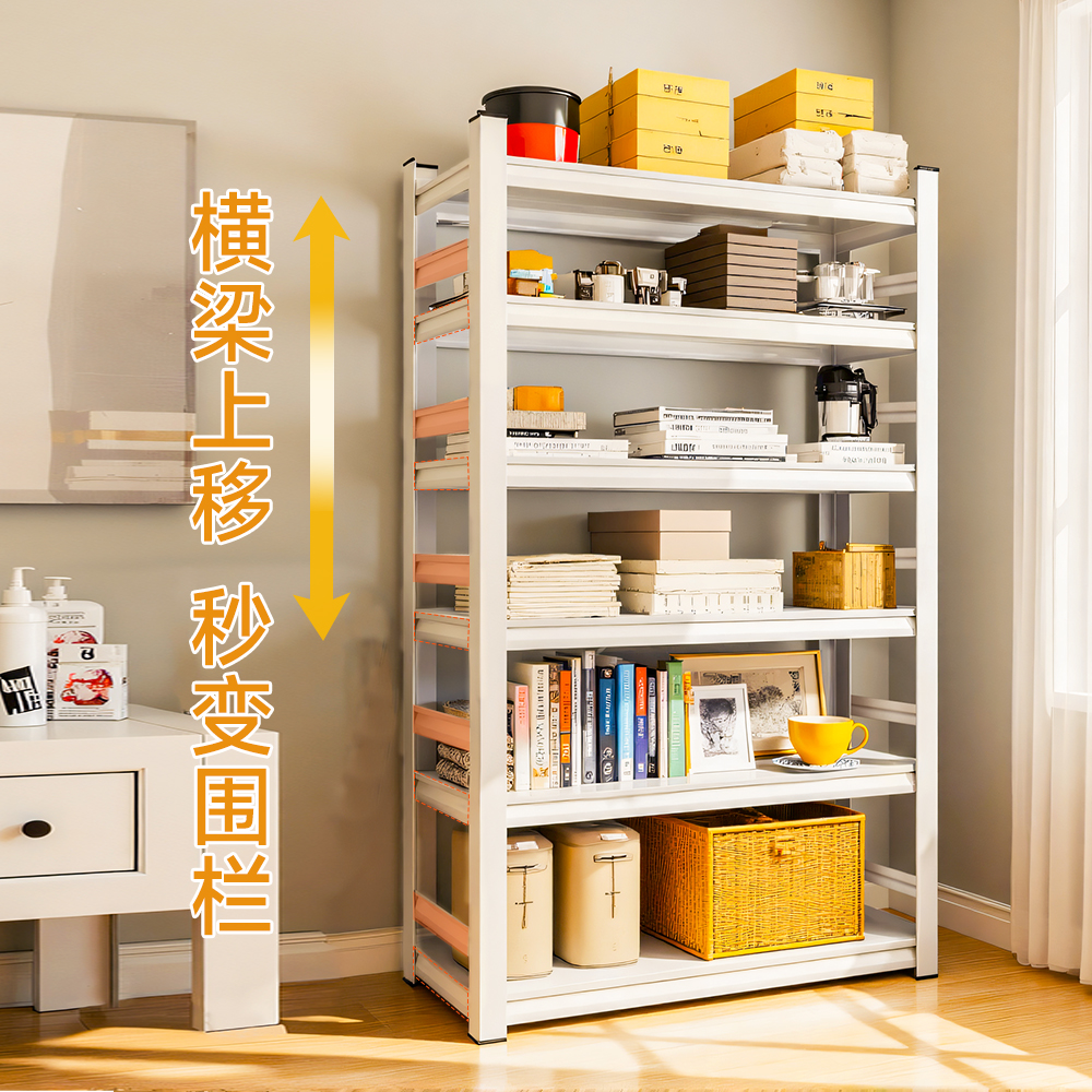 钢制书架家用简易落地置物架一体靠墙客厅收纳架多层储物架图书馆