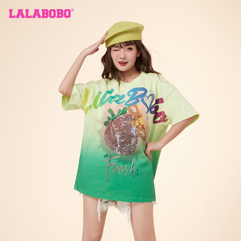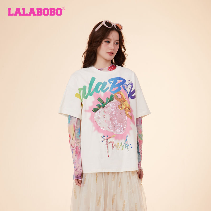 苏新皓同款 LALABOBO立体白发条草莓纯棉圆领短袖T恤LBDA-WSDT37