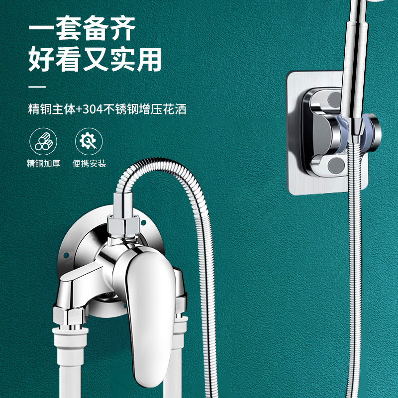 通用型全铜冷热淋浴龙头电热水器混水阀暗装三联浴缸龙头花洒套装