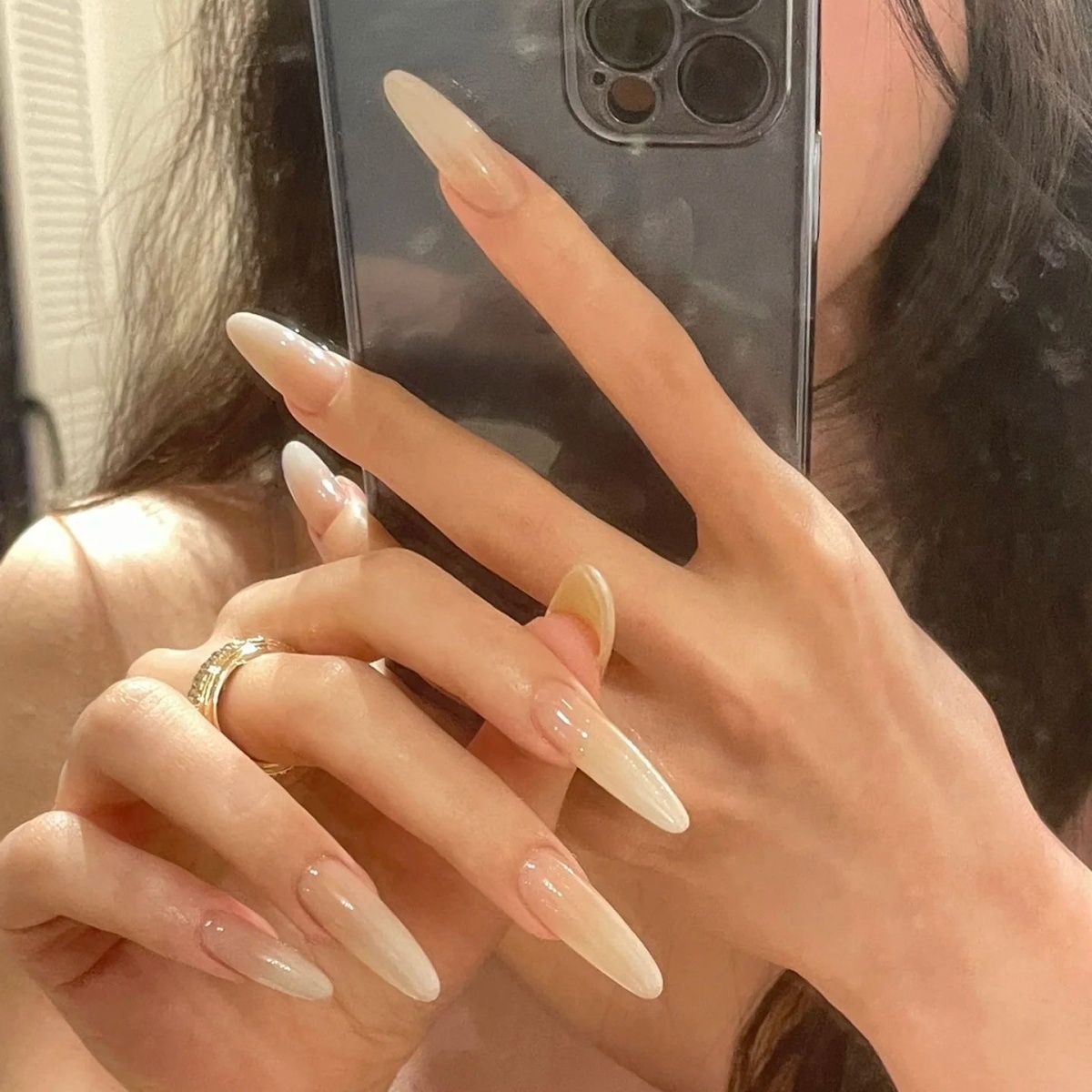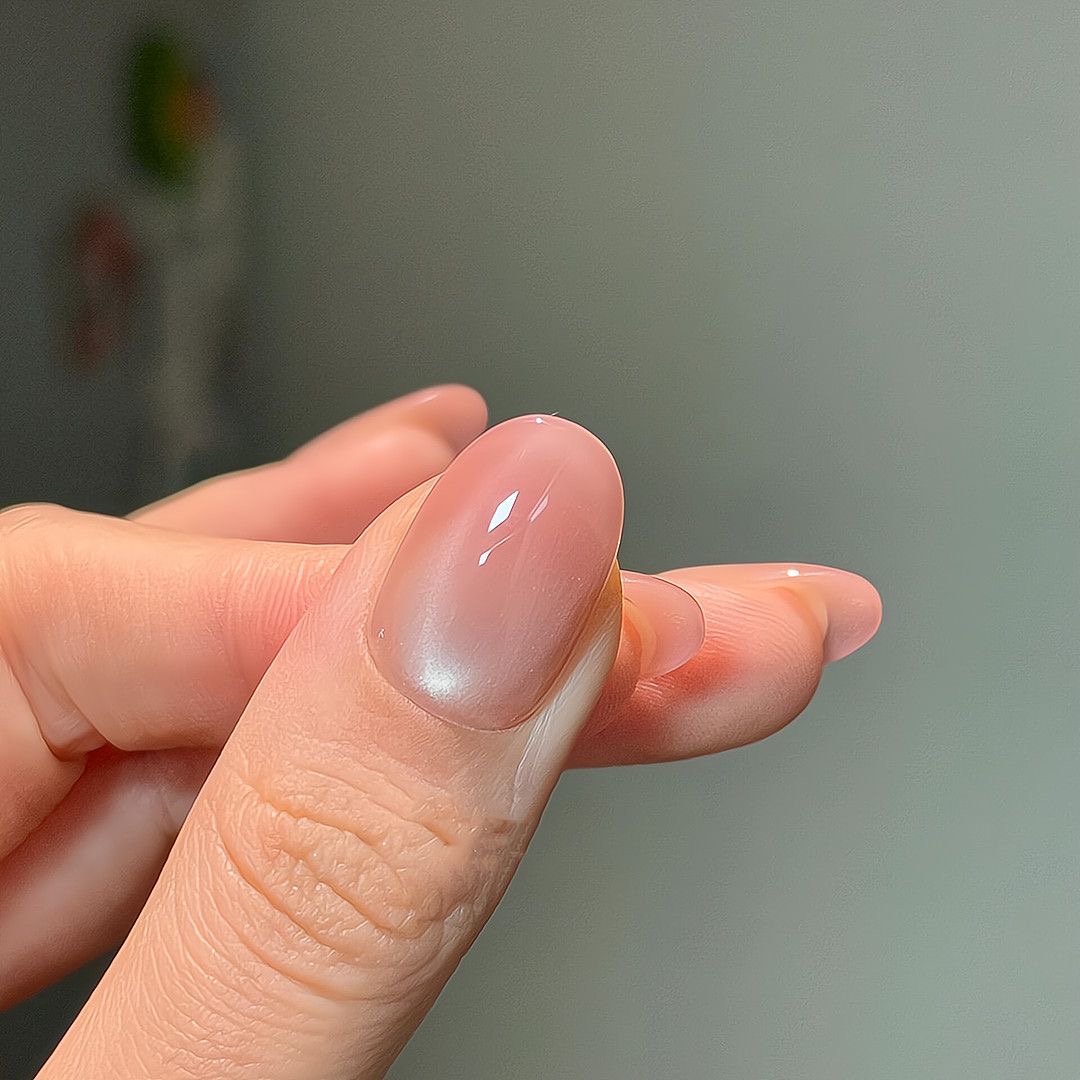 桃之夭夭渐变裸色短款显白温柔猫眼穿戴甲INS风美甲可拆卸甲片