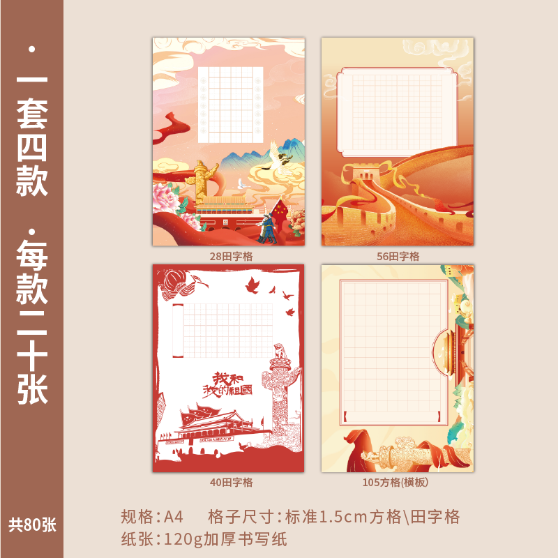 懿心阁硬笔书法作品纸书法纸小学生方格田字格红色主题国庆节练字本练字比赛专用纸a4七言古诗每日一练书写纸