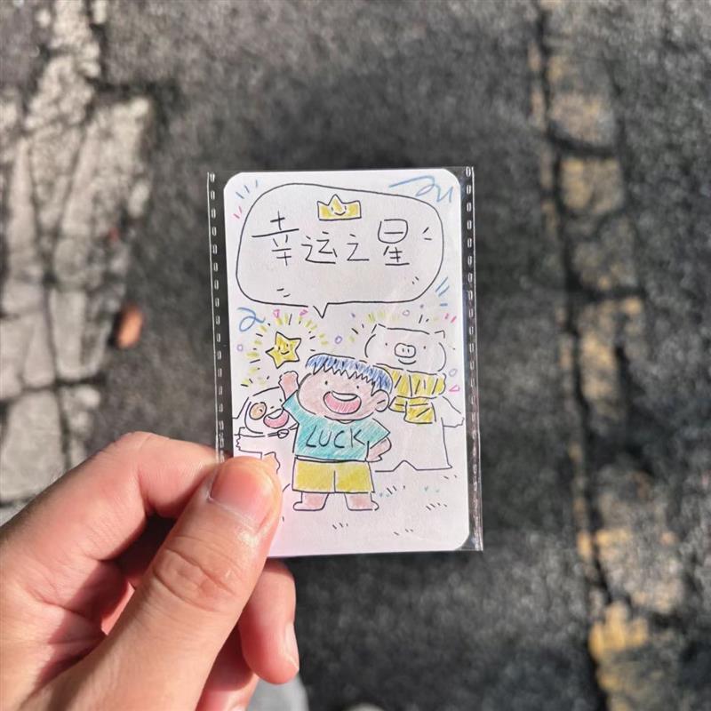 文创新款幸运之星3寸小卡治愈系插画正反双印原角diy拍照装饰收藏