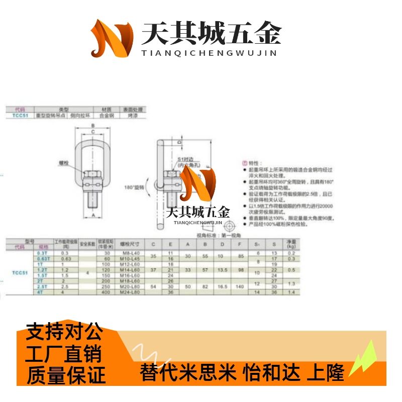 侧向旋转吊环 侧向吊钩 怡合达型 TCC51-1T 2.5T 2T 4T