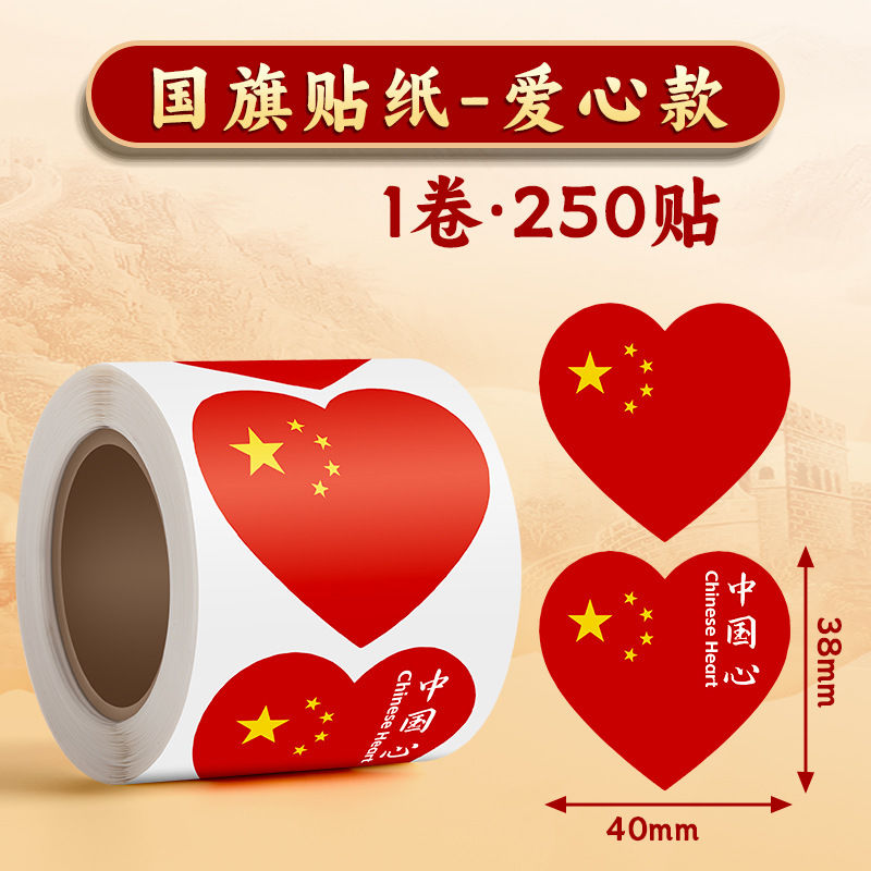 10.1中国五星小红旗贴贴纸脸贴纸爱心贴画手臂贴纸幼儿园国庆节贴