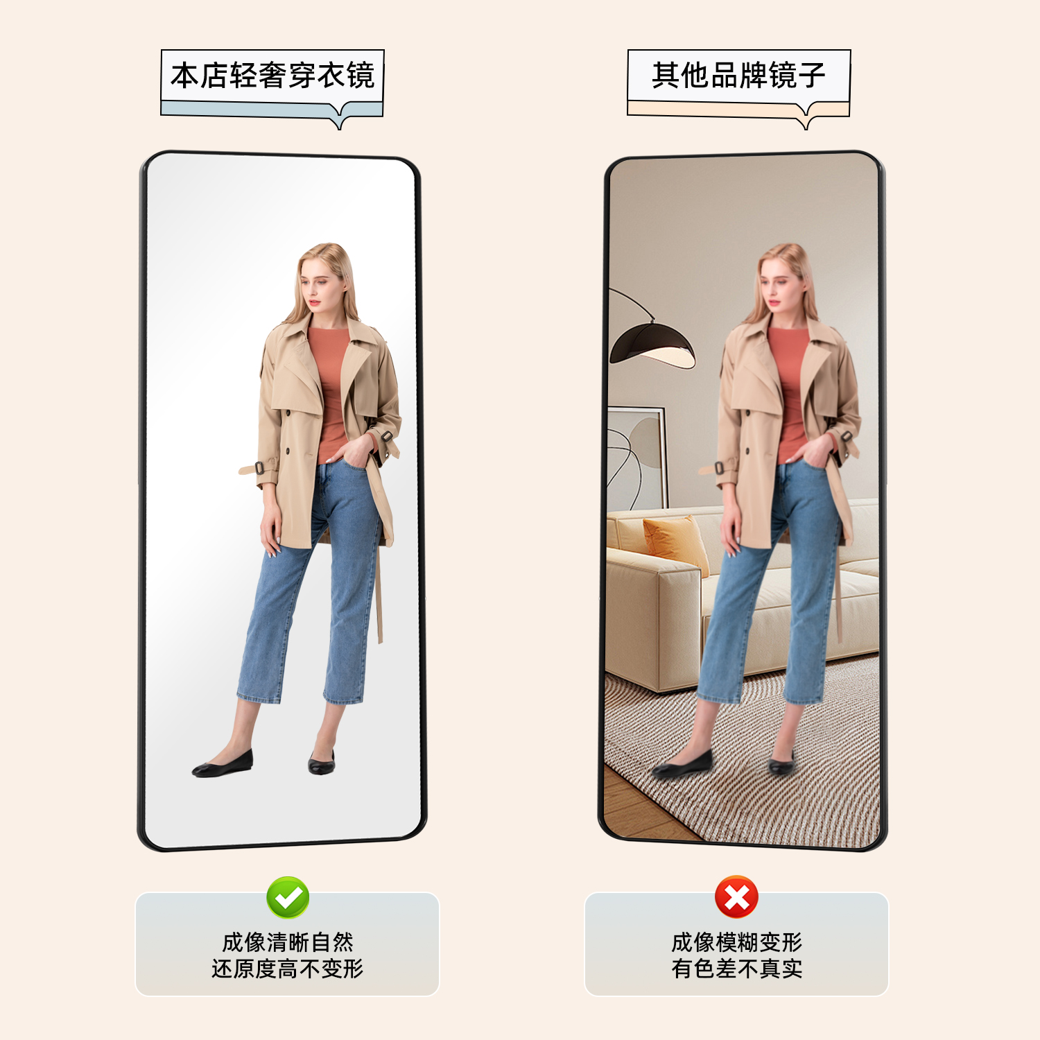 全身镜穿衣落地镜子家用贴墙女生卧室挂墙试衣镜隐藏玻璃免打孔