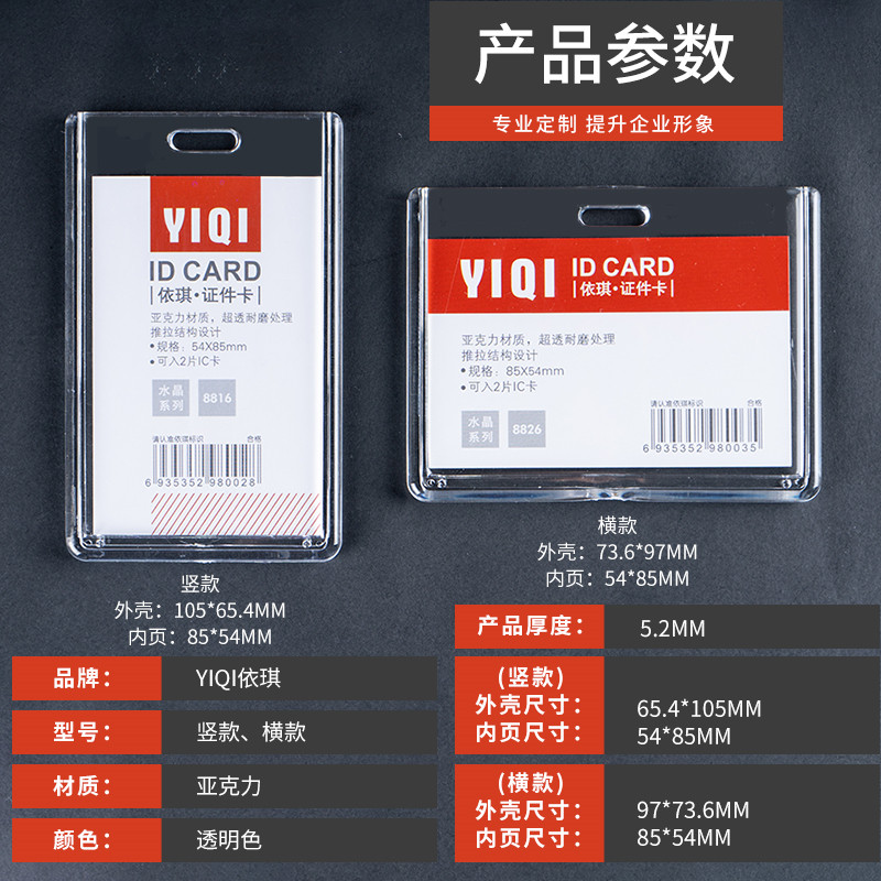 亚克力水晶透明卡套时尚办公室工作牌定制展会工厂公司学校韩系工牌定做印刷挂绳吊牌吊绳员工牌工作证名牌